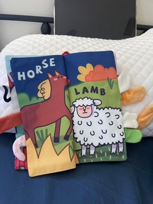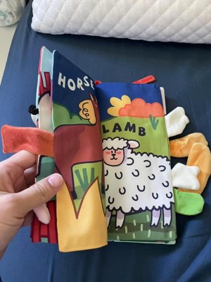 The book arrived in good condition and matches the product description. The fabric pages are soft and flexible, making them suitable for my baby to touch, grab, and explore. The animal illustrations are bright and clear, and each page introduces simple farm animals such as ducks, frogs, horses, and lambs. The attached fabric tails add a tactile element that helps encourage sensory exploration. The stitching appears secure, and the materials feel durable enough for regular handling. I have used this book in different settings, including the crib area and play mat. It is lightweight and easy to carry, making it practical for daily use at home or on the go. It meets expectations as a simple, engaging cloth book for early developmental play.
