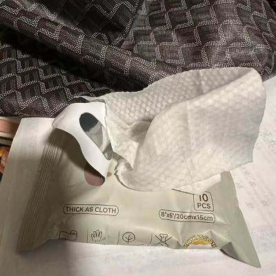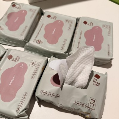 This portable wipe is the softest I have ever used! A small bag is very convenient to carry and does not take up space. The backpack can put more things in it. The paper towel is soft and moist enough. The baby won't resist. Because it is soft enough to not irritate the baby's sensitive skin. There are 6 small bags in a big bag, 10 tablets per bag, which is cheap.