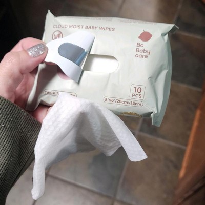 The pocket size package of Babycare unscented baby wipes is perfect for travel. It fits pockets, small purses, small bags. Each pack has 10 pieces. The wipes themselves are thick yet soft. The quality of the wipes are excellent. I like the moisture level of the wipes as well. It's just the right amount of moisture that I'm expecting.