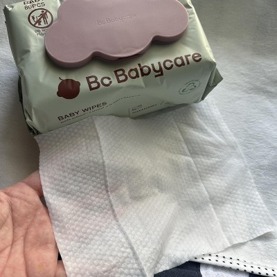 I finally received the BC Babycare wet wipes. They are the best wet wipes I've ever used. First, the wipes are very large, which is perfect for my newborn baby. Secondly, the wipes are very thick; one wipe is usually enough to clean my baby's entire body. You can see from my pictures that they are twice as thick as other brands of wet wipes. Furthermore, the wipes are very soft and made from all-natural plant materials, so I feel very safe using them on my baby. They are also very easy to dispense; you don't accidentally pull out too many, which would be a hassle to put back.