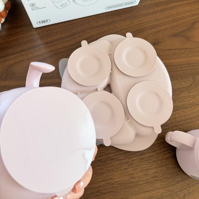 I really love the Babycare silicone feeding set, especially the cup included in the set. The cup is made of 100% silicone, and the straw has small raised textures that naturally attract babies who are just learning to drink from a straw. It also works great as a teether, so my baby often chews on the straw and then practices sipping water at the same time. The suction on the plate is very strong and stays firmly in place, giving my child no chance to flip or spill food. The set feels well-designed, practical, and very baby-friendly for everyday use.