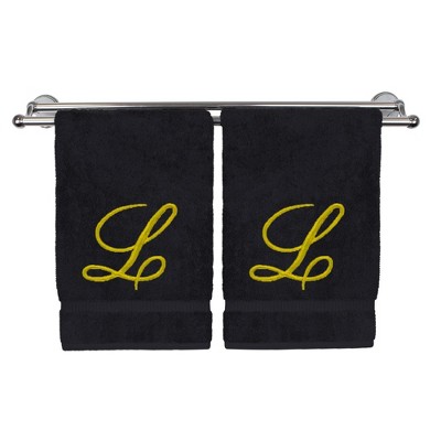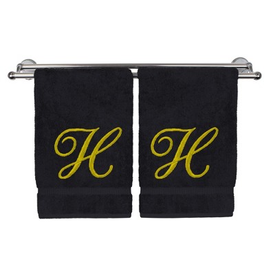 BC BARE COTTON Monogrammed Hand Towel, 100% Turkish Cotton - Set of 2 - Black - Gold Script