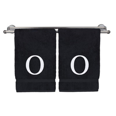 BC BARE COTTON Monogrammed Hand Towel, 100% Turkish Cotton - Set of 2 - Black - White Block