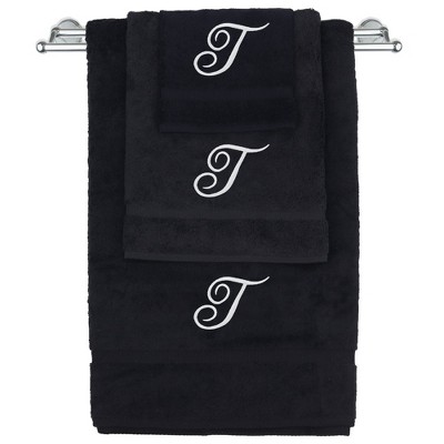 BC BARE COTTON Monogrammed Towel Set, Personalized Gift, Set of 3 - Black - White Script