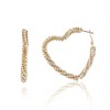 Add a touch of sparkle and love to your look with these heart-shaped hoop earrings adorned with shimmering crystals.