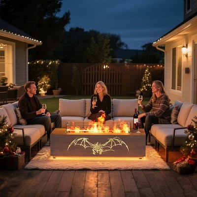 Transform your outdoor space with the Evita Propane Fire Pit Table (48.1" × 20.1" × 12.4"), designed to bring warmth, comfort, and style to any patio or backyard. Delivering a powerful 50,000 BTU of heat, it creates a cozy atmosphere for year-round gatherings. The elegant hollow design paired with soft LED base lighting adds an inviting glow that enhances nighttime ambiance.