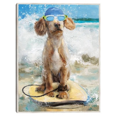 Bring a slice of paradise to your space with this framed canvas print featuring an Australian Shepherd basking on a sandy beach under a blue sky Printed on only top-quality canvas with first-rate technology, every brushstroke is distinctive and defined. Plus, with printing that covers the expanse of the canvas, framing is unnecessary and hanging your new artwork is a cinch