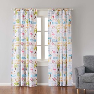 The Beach Days Reversible Drape Panel (55x84in.) with Rod Pocket by Levtex Home is inspired by Summer days at the beach. Offered in shades of teal, blue, yellow, green, brown and pink, this design will immediately transform your bedroom. Made with 100% cotton, this drape panel features beach motifs, flamingos, palm trees and fun words. The Drape Panel (55x84in.) with Rod Pocket is machine washable. Enjoy this for years to come!