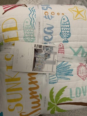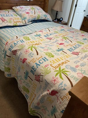 Homthreads Beach Days Quilt Set White/Green/Blue