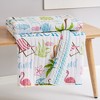 - THE BEACH DAYS DESIGN: One of our most popular quilt sets, Beach Days is inspired by Summer days at the beach. The front features beach motifs, flamingos, palm trees and fun words which reverses to a teal blue and white stripe. A bound border provides contrast and texture to complete the look.