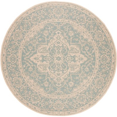 Beach House BHS121 Power Loomed Indoor/Outdoor Accent Rug - Aqua/Cream - 4' Round - Safavieh