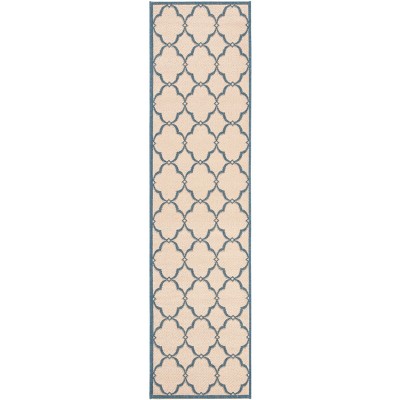 Beach House BHS121 Power Loomed Indoor/Outdoor Runner Rug - Aqua/Cream - 2'2"x12' - Safavieh