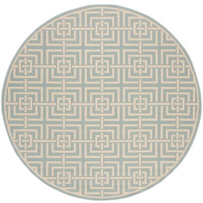 Beach House BHS122 Power Loomed Indoor/Outdoor Area Rug - Aqua/Cream - 6'7" Round - Safavieh
