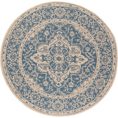 Beach House BHS138 Power Loomed Indoor/Outdoor Area Rug - Blue/Creme - 6'7" Round - Safavieh