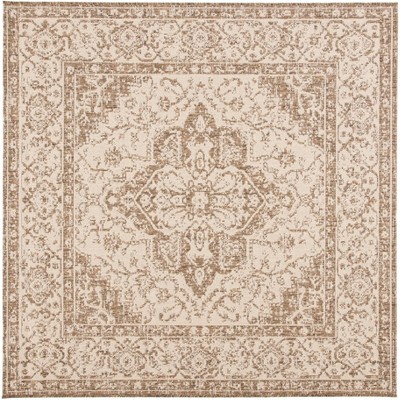 Beach House BHS138 Power Loomed Indoor/Outdoor Area Rug - Cream/Beige - 6'7"x6'7" - Safavieh