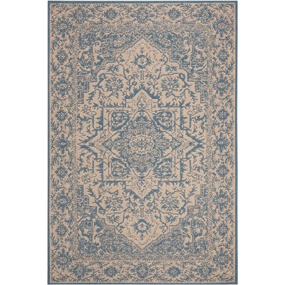 Beach House BHS174 Power Loomed Indoor/Outdoor Area Rug - Cream/Blue - 5'3"x7'6" - Safavieh