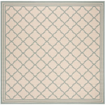 Beach House BHS181 Power Loomed Indoor/Outdoor Accent Rug - Cream/Aqua - 4'x4' - Safavieh