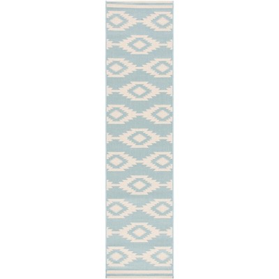 Beach House BHS183 Power Loomed Indoor/Outdoor Runner Rug - Cream/Aqua - 2'2"x12' - Safavieh
