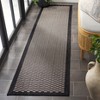 Elevate your decor with this impeccably crafted 2' x 8' runner rug, featuring a timeless black and beige color palette that seamlessly blends into both contemporary and classic design schemes. The rug showcases a sophisticated herringbone pattern, lending a touch of visual interest and texture to any space. Expertly power-loomed in Turkey, this rug boasts a durable polypropylene construction, making it an ideal choice for high-traffic areas both indoors and outdoors. Its resilient fibers ensure easy cleaning and maintenance, while the sturdy 3/4" pile height delivers underfoot comfort that is sure to be appreciated. Whether placed in your hallway, kitchen, or outdoor patio, this versatile and stylish runner is designed to withstand the elements while adding elegance to your living space.