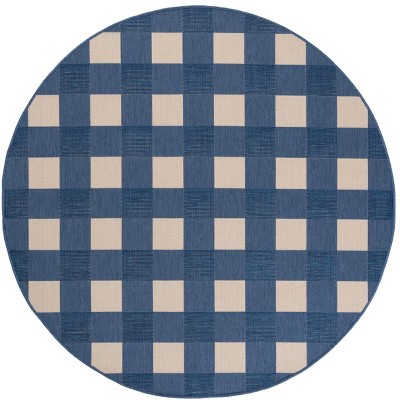 Beach House BHS410 Power Loomed Stain Resistant Non-Shedding Indoor/Outdoor Area Rug - Navy/Ivory - 6'7" Round - Safavieh