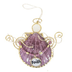 Decorative, Sea Shell Guardian Angels with Metallic Wire Wings and Trim and "Faith" Charm. 6 x 5 inches.
