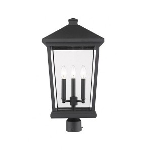 Clear beveled glass stands out with texture and sophistication against a warm rubbed bronze finish lantern frame, making this outdoor post lantern a fabulous option. Dress up a back yard garden or front fence with a charming village-themed light offering a clear view of a romantic candelabra bulb base. Outdoor Living/Deck/Patio Shade Included: Yes Dimmable: Yes