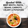 enriched pasta (wheat flour, niacin, ferrous sulfate, thiamine mononitrate, riboflavin, folic acid), onion*, carrots*, tomato*, cooked red beans*, cooked black beans*, potatoes*, salt, modified corn starch, corn*, garlic*, hydrolyzed soy protein, celery*, sugar, spices, disodium inosinate and disodium guanylate, beef stock, spinach*, parsley, corn starch, chicken fat, caramel color, citric acid, beef fat, natural flavor. * dried ingredients.