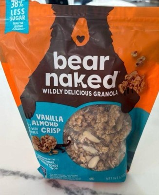 Every bag of granola starts with us foraging for irresistible flavors and bountiful chunks of goodness. The perfect anytime snack, Bear Naked Vanilla Almond Crisp granola blends whole grain oats, roasted almonds, and vanilla flavor, plus brown sugar and a dash of sea salt for a delectable sweet and savory combination. After you try it, you'll keep coming back for more handfuls; Each serving contains 29g of whole grains and is a good source of fiber (contains 8g total fat per serving). Perfectly prepared to snack out of the bag, enjoy in a bowl, sprinkle as a topping on your favorite desserts, or to bake into treats. Take this fiber granola with you to the office, on a hike, or on road trips. Trust us, the bears know how to sniff out wildly delicious flavors, and this granola is the perfect blend of crunchy almonds, sweet vanilla flavor, delectable brown sugar and soft-rolled oats. So next time your stomach growls, grab a pawful of Bear Naked granola!