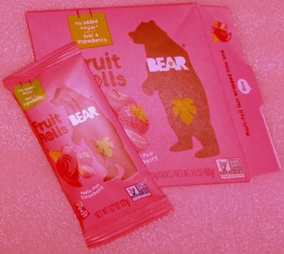 BEAR Strawberry Fruit Snack Rolls. 5 individual packs - 2 fruit rolls per pack. Just fruit and absolutely nothing else! All BEAR fruit snacks are 100% natural with no added sugar. Non-GMO. Gluten-Free. Vegan. Kosher. We are the healthy and fun choice for lunchboxes, back to school, and on the go snacking you can feel good about. Adored by kids and loved by parents!