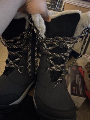 My old snow boots didn't keep my feet warm, these are better for the price. I have a wide foot, and these don't come as a wide, but ordering a size larger helps, and breaking them in. I'm not thrilled with the lace-up feature, and would have preferred a faster, simpler way to get them on and off. They also lack a loop at the back to assist with getting them on. I am otherwise satisfied with this purchase.