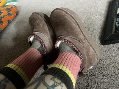 I am a BEARPAW campus ranger, and during the program I have had the opportunity to try + wear many new styles, but I was SOO excited for this one to arrive. This boot is the perfect shade of cocoa brown to go with any brown outfit. The retro shorty style is also my favorite because it has a perfectly sized platform that adds something special to the shoe. I would HIGHLY recommend! Also, size up if you wear a half size for a more comfortable fit :)