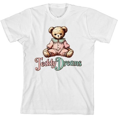 Beary Cute Teddy Bear Boy's White Crew Neck Short Sleeve Tee-Large