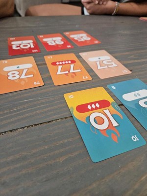 [This review was collected as part of a promotion.] I had to read the directions twice in order to understand how to play the game and look back a couple times but that’s totally normal for first time play! This game is actually a lot of fun! My husband and I have a lot of laughs playing this and I get quite competitive while playing. I love how it makes you think, you never know what card your competitor is going to put down, so that makes the game exciting. The cards are durable material, they are very colorful and cool looking. I really love this game and look forward to introducing it to others in the future.
