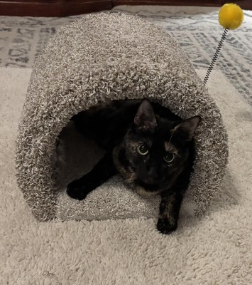 This is the best little tunnel I have ever purchased for my disabled cat. This is my second one. The first one was purchased about 6 years ago and still looks great. It is so sturdy I can sit on it without an issue. I have searched for several years to find and purchase a second one and now I have found it at Target! You can see from my photos how well it has held up. My cat cannot jump or climb in the higher cat trees so this has proven to be her favorite "safe" place to be. I am very happy with this purchase. This tunnel would be great for rabbits also since it is low to the ground. The first picture is the new tunnel and the second is my original. You can see how well it has held up.