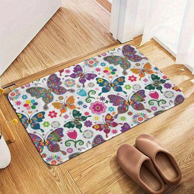 Beautiful Butterflies Bathroom Rugs Winter Bath Mat Absorbent Non Slip Bathroom Mat Christmas Soft Floor Carpet 16x20 Inches - 1 of 1