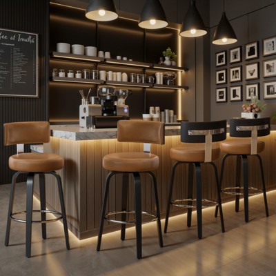 360-Degree Swivel: Enjoy unrestricted movement and convenience with our bar stool's 360-degree swivel feature. Whether your guests are mingling at a cocktail party or catching up over drinks, they can effortlessly turn and engage in conversations without ever leaving their seat.