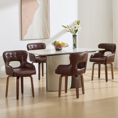 Beautyolove Modern Swivel Upholstered Faux Leather Solid Wood Dining Chairs (Set of 6)