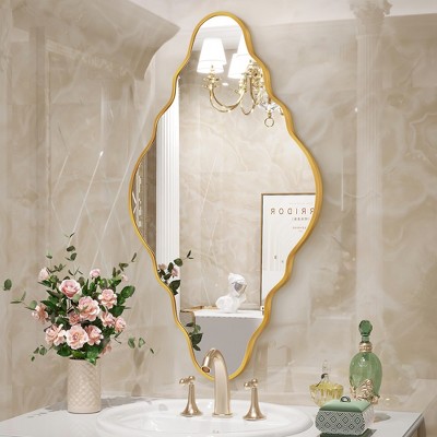 Beautyolve Irregular Gold Aluminum Alloy Framed Asymmetrical Wall Mirror with Functional Charm