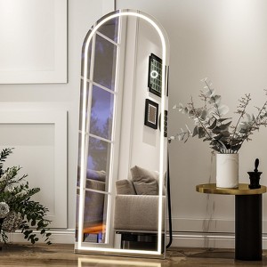 BEAUTYPEAK LED Rectangle With Rounded Top Full Length Mirrors 64"x21",White