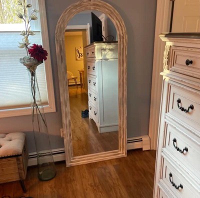- Unique Design: The top of the floor mirror is designed with a unique smooth arched-top frame, which especially attracts people's attention and highlights the beauty of the mirror. The solid wooden frame makes the mirror looks more classic and it is suitable for dressing in any room.