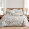 - THE BECKER TAUPE DESIGN: One of our most popular sets, Becker Taupe is sophisticated and traditional. The front is a taupe and grey floral ikat on a cream ground and the reverse is scalloped diamond design in grey on cream. The comforter is filled with soft, hypoallergenic 100% polyester.