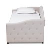 The serene design of the Becker daybed brings elegant comfort to any bedroom space. Made in Malaysia, the Becker is comprised of a sturdy wood frame padded with foam and upholstered in smooth fabric. Button tufting creates a chic, contemporary look from any angle, while the roll-out trundle provides convenient accommodation for overnight guests. Requiring assembly, the Becker utilizes wood slats for mattress support, which eliminate the need for a box spring. Smooth curves create a pleasant silhouette, making the Becker daybed a tranquil addition to the modern bedroom. Dimensions: 36.8" High x 83.1" Wide x 43.5" Deep; Arm: 29.1" High; Inside Mattress Dimensions: 39" Wide x 74" Deep; Trundle Dimensions: 11.4" High x 76.8" Wide x 40.9" Deep; Trundle Mattress Size: 39" Wide x 74" Deep;