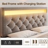 - Bed Frame with Charging Station. The bed frame with adjustable headboard has a built-in charging station with 2 AC power sockets, 2 fast-charging USB ports and a Type-C port to conveniently charge various electronic devices.