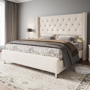 - Velvet Bed Frame - Upholstered in velvet fabric is great Permeability, durable and soft touch. Contemporary wingback headboard design with nailhead trim.