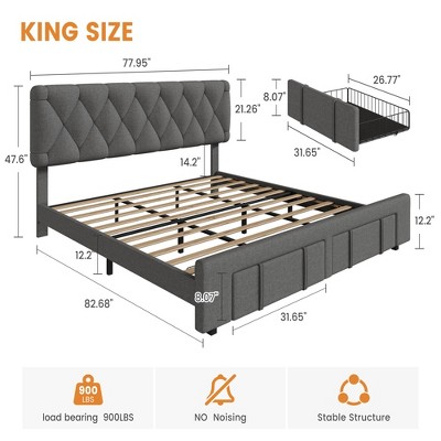 Bed Frame, Upholstered Platform Bed Frame with Storage Drawers, Mattress Foundation with Solid Wooden Slats Support, No Box Spring Needed - 2 of 4Bed Frame, Upholstered Platform Bed Frame with Storage Drawers, Mattress Foundation with Solid Wooden Slats Support, No Box Spring Needed - 3 of 4Bed Frame, Upholstered Platform Bed Frame with Storage Drawers, Mattress Foundation with Solid Wooden Slats Support, No Box Spring Needed - 4 of 4
