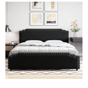 - [Sturdy Comfort]: Experience restful nights on our robust king bed frame, designed with strong wooden slats for excellent support. With a capacity of up to 1000 lbs, this frame offers stability and comfort without needing a box spring. The resilient rubberwood legs are crafted for long-lasting use, ensuring you can enjoy your bed for years to come.[Stylish Velvet Design]: Elevate your bedroom aesthetic with our chic velvet upholstered bed frame. The plush headboard is adorned with decorative nailhead accents, adding a touch of sophistication and modern charm to your space. Transform your bedroom into a sanctuary with this stylish centerpiece.[Quiet and Steady]: Our king-size bed frame features a clever mix of sturdy wooden and strong steel slats, ensuring remarkable stability and longevity. Say goodbye to squeaky noises and enjoy peaceful nights of uninterrupted sleep. This frame is designed to create a tranquil environment for your relaxation.[No Box Spring Needed]: This bed frame comes equipped with 18 solid wood slats that are evenly spaced to provide direct support for your mattress. You won't need a box spring, making it a practical choice for simplifying your bedding setup. (Please note: Mattress sold separately.)[Simple Assembly]: Setting up your new bed is a breeze! Our king bed frame arrives in a well-organized package with all the necessary components, tools, and clear instructions. Enjoy a hassle-free assembly experience that can be completed in 30 minutes, even if you're new to putting things together. We're here to support you every step of the way.