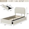 --Smart Storage: The bed frame with innovative storage headboard provides plenty of space for books, pads, and personal items, keeping your essentials within reach while maintaining a tidy appearance. It's a perfect solution for maximizing space in smaller bedrooms --Effortless Organization: This bed includes 2 roomy drawers that can be positioned in any of the four locations underneath, offering flexible storage solutions tailored to your space. Ideal for neatly organizing clothes, toys, or extra bedding, it maximizes room efficiency in smaller bedrooms --Luxurious Elegance: This platform bed frame features a soft boucle fabric upholstered design, adding a touch of luxury and comfort to any bedroom decor. Its soft headboard offers extra comfort, making it perfect for reading and relaxing --Sturdy Construction & Noise-Free Design: Constructed with a heavy-duty metal frame and sturdy wooden slats, this upholstered bed frame for kids offers reliable support without the need for a box spring. Enjoy a solid foundation for your mattress, ensuring a restful night's sleep --Easy Assembly & Outstanding Customer Support: The bed frame allows easy assembly within 40 minutes with detailed instruction and numbered parts.