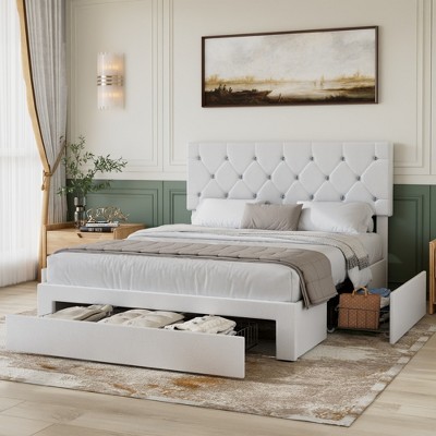 - 【Versatile Storage】: This boucle upholstered bed frame includes two rolling storage drawers that can be placed on either the left or right side, depending on your needs. Tuck away extra bedding or personal items, keeping your bedroom organized and clutter-free