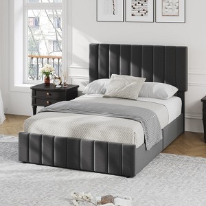 Full Size Bed Frame with 4 Storage Drawers, Linen Upholstered Platform Bed Frame, Adjustable Height Headboard, No Box Spring Needed, Easy to Assembly, Grey