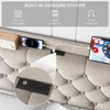 Bed Frame With Charging Station And Wingback Storage Headboard, Button Tufted Upholstered Platform Bed With Adjustable Headboard, No Box Spring Neede